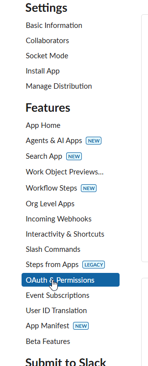 OAuth & Permissions 메뉴를 선택한다.